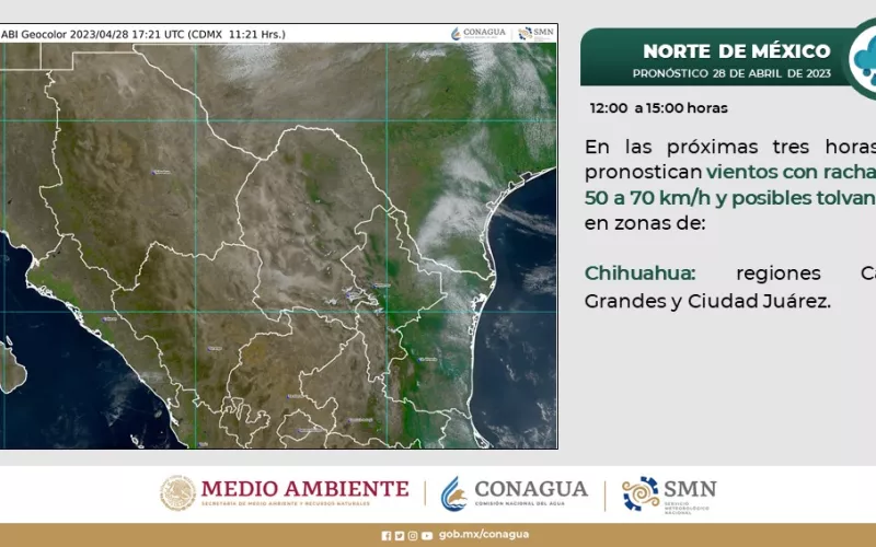 Los ráfagas de viento tendrán mayor incidencia en la zona norte y noroeste del estado, principalmente en Ojinaga, Guadalupe, Manuel Benavides, Coyame y partes del municipio de Juárez.
