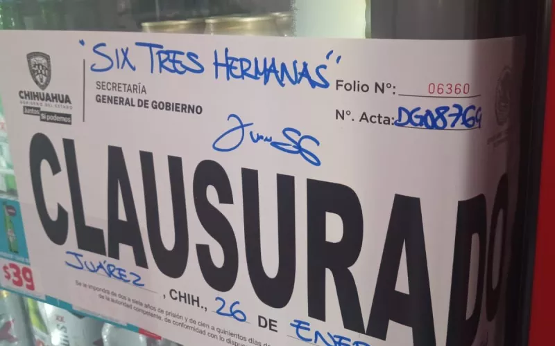 • Tienda de Abarrotes “Six Tres Hermanos” por violación de giro, promoción de bebidas alcohólicas y extintor obstruido (Ciudad Juárez).