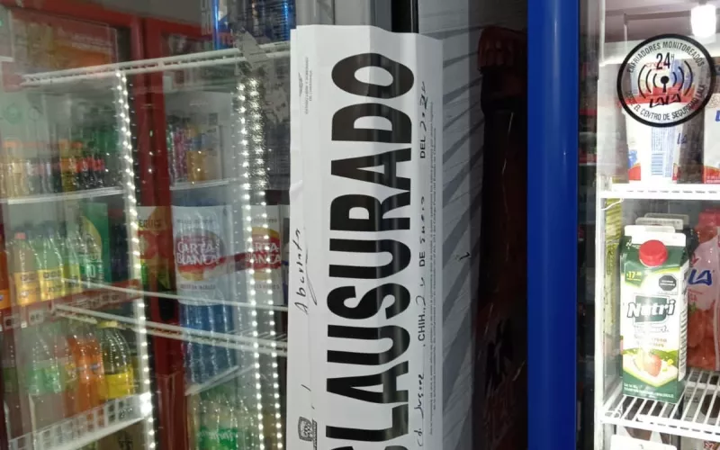• Tienda de Abarrotes “Modelorama” licencia suspendida y suspensión de venta con sellos (Chihuahua).