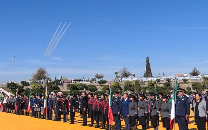Durante el acto solemne, las autoridades estatales, representantes de las fuerzas armadas, integrantes del gabinete estatal, así como estudiantes y ciudadanía en general, participaron en los honores a la Bandera y en la entonación del Himno Nacional Mexicano.