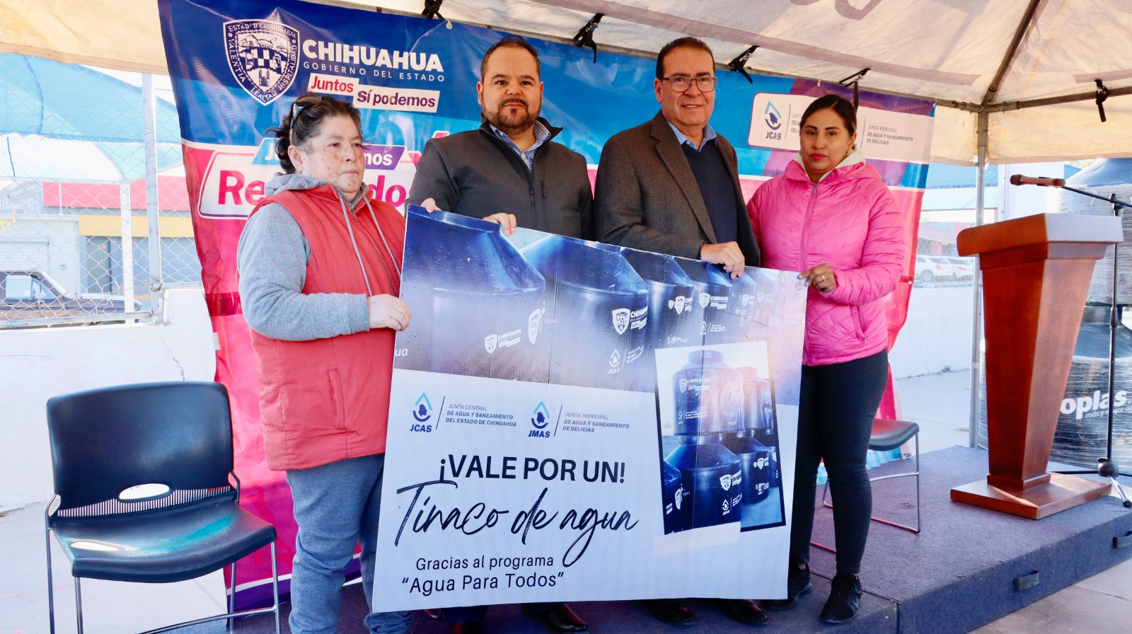 Como parte del Programa “Agua para Todos” de la Junta Central de Agua y Saneamiento (JCAS), fueron donados 80 tinacos que permitirán el almacenamiento del vital líquido a igual número de familias de la colonia Revolución, en Delicias, con una inversión de 128 mil pesos.