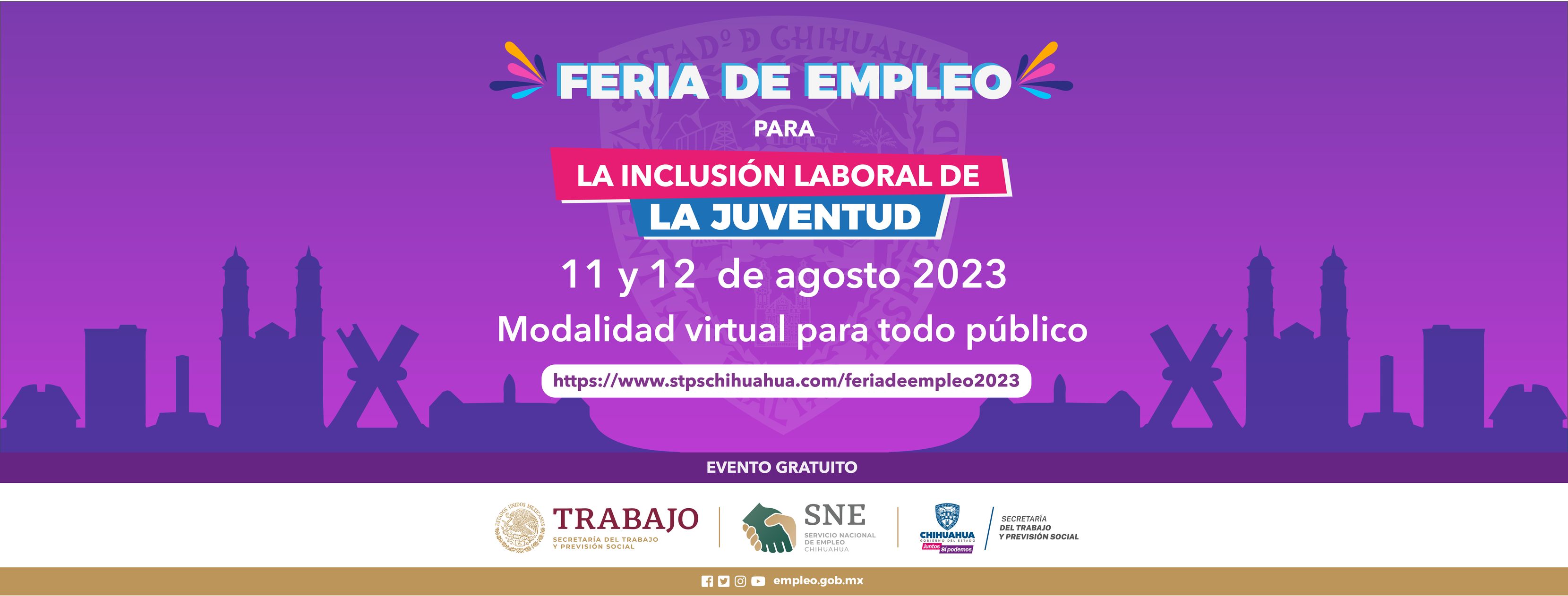 El Gobierno del Estado de Chihuahua, a través del Servicio Estatal de Empleo (SEE) de la Secretaría del Trabajo y Previsión Social, invita a las personas buscadoras de empleo a participar este próximo viernes 11 y 12 de agosto en la Feria de Empleo Virtual para la Inclusión Laboral de la Juventud.