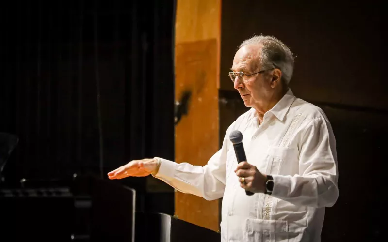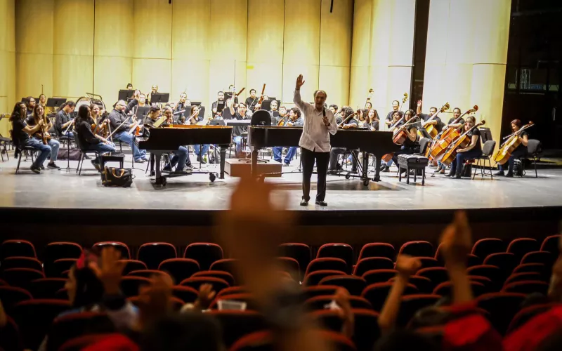 El concierto se llevó a cabo bajo la batuta del director invitado Gordon Campbell, quien brindó un mensaje de agradecimiento e incentivo a madres, padres y tutores para que acerquen a las niños y niños a la música clásica.