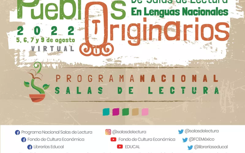 La Secretaría de Cultura del Estado de Chihuahua, a través del Programa Estatal de Salas de Lectura, invita a las conferencias virtuales que se realizarán en el marco del Segundo Encuentro Nacional de Salas de Lectura en Lenguas Nacionales Pueblos Originarios 2022 los días 5, 6 y 7 de agosto en las redes sociales de @Chihuahuasalasdelectura y @Identidad.Norte