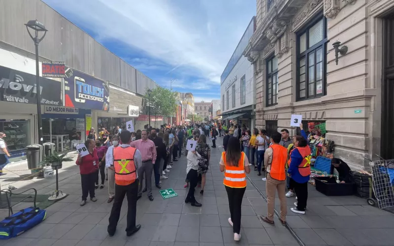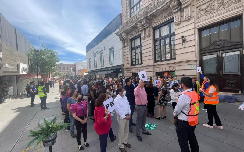 La hora en la que se activó la alarma del simulacro fue a las 11:00 horas, para la evacuación del edificio público ubicado en la callle Victoria 310, Zona Centro, cumpliendo así con el protocolo oficial.