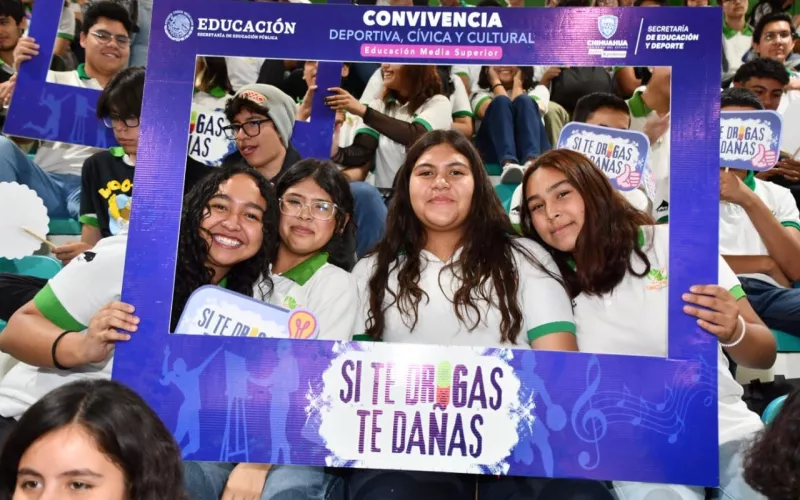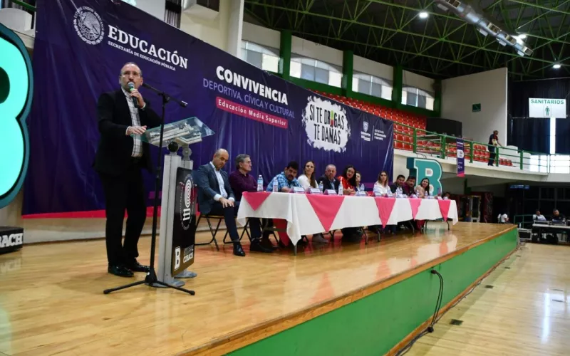 Con la participación de más de dos mil estudiantes del nivel Medio Superior, así como de docentes, madres y padres de familia, el Gobierno del Estado, a través de la Secretaría de Educación y Deporte (SEyD), realizó la “Convivencia Deportiva, Cívica y Cultural, Si te Drogas, te Dañas”.