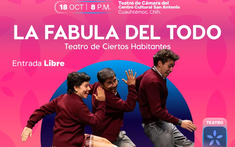 Al día siguiente llega la obra, la “Fábula del todo”. La cita es a las 20:00 horas en el Teatro de Cámara, del Centro Cultural San Antonio.