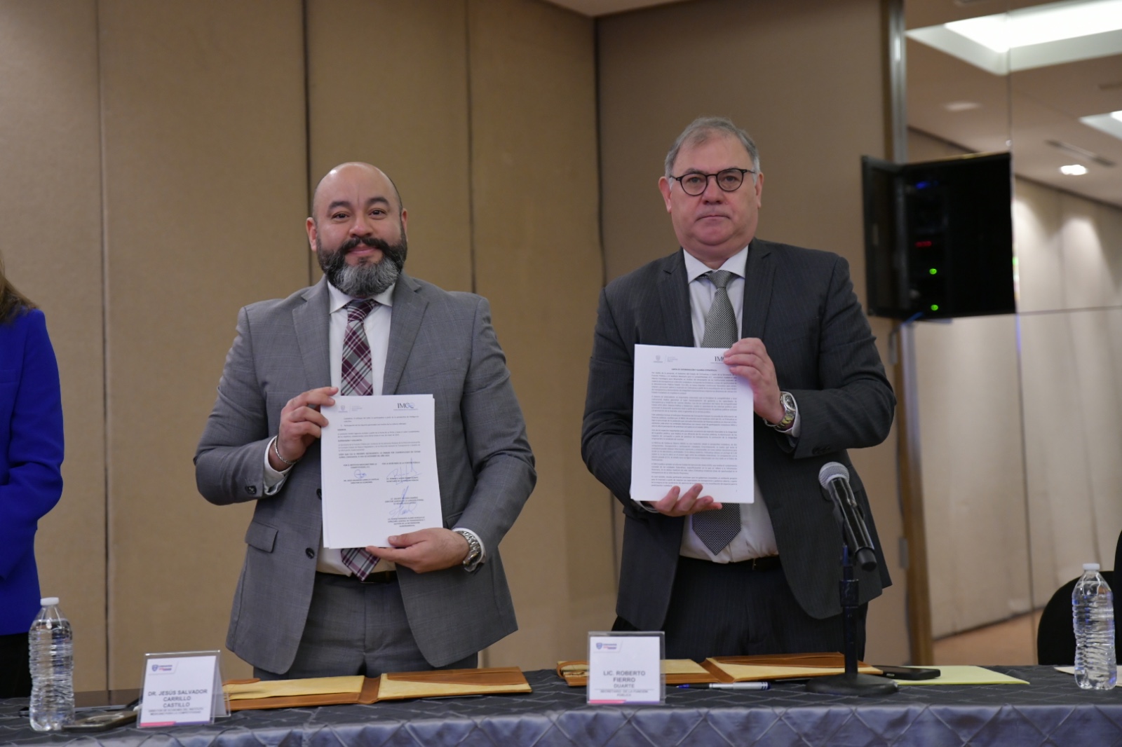 Durante el evento, el secretario de la Función Pública, Roberto Javier Fierro Duarte, y Jesús Salvador Carrillo Castillo, director de Economía del Instituto Mexicano para la Competitividad (IMCO) A.C., firmaron una alianza para mejorar el desempeño de las instituciones estatales en materia de transparencia e integridad y promover un entorno más competitivo en el estado de Chihuahua.