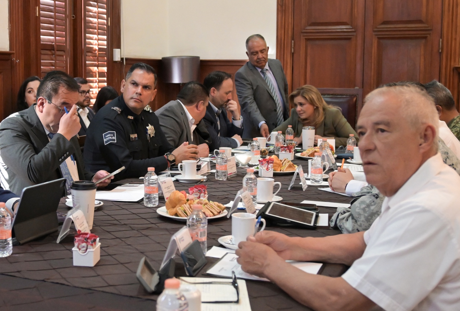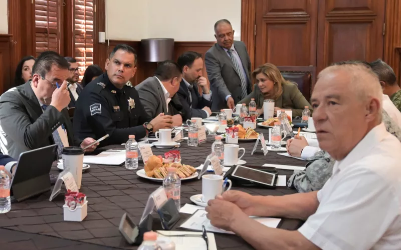 La gobernadora Maru Campos encabezó esta mañana en Palacio de Gobierno, la reunión de la Mesa Estatal de Coordinación para la Construcción de la Paz, en la cual se dio seguimiento a las estrategias implementadas en la entidad en materia de seguridad.