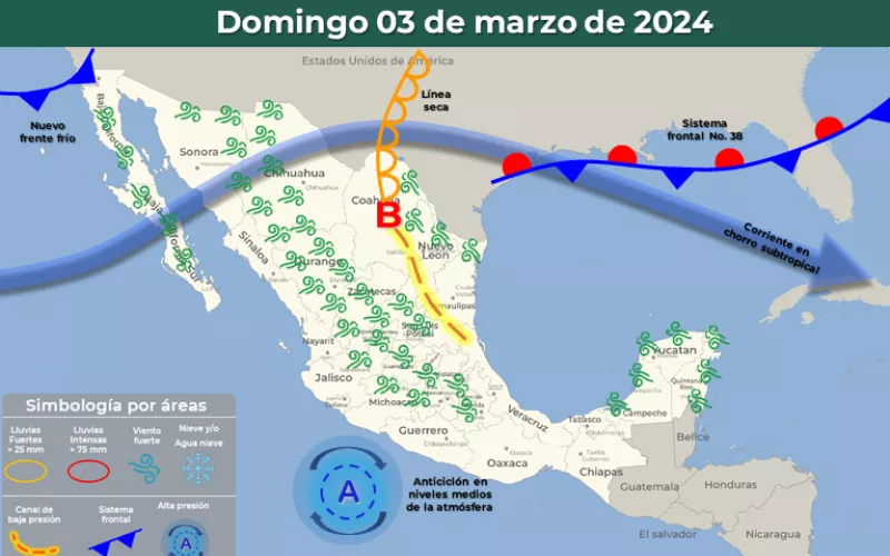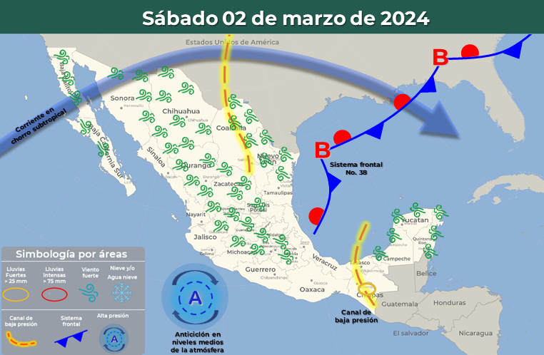 Lo anterior se debe a la presencia de un canal de baja presión y una corriente en chorro, además del ingreso del frente frío 39 a la entidad.