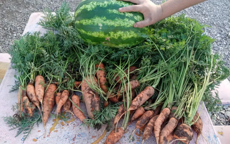 Entre los alimentos orgánicos cosechan se incluye sandía, pepino, zanahoria, chile jalapeño, betabel, espinaca, tomate, repollo, calabaza, lechuga y ejote.