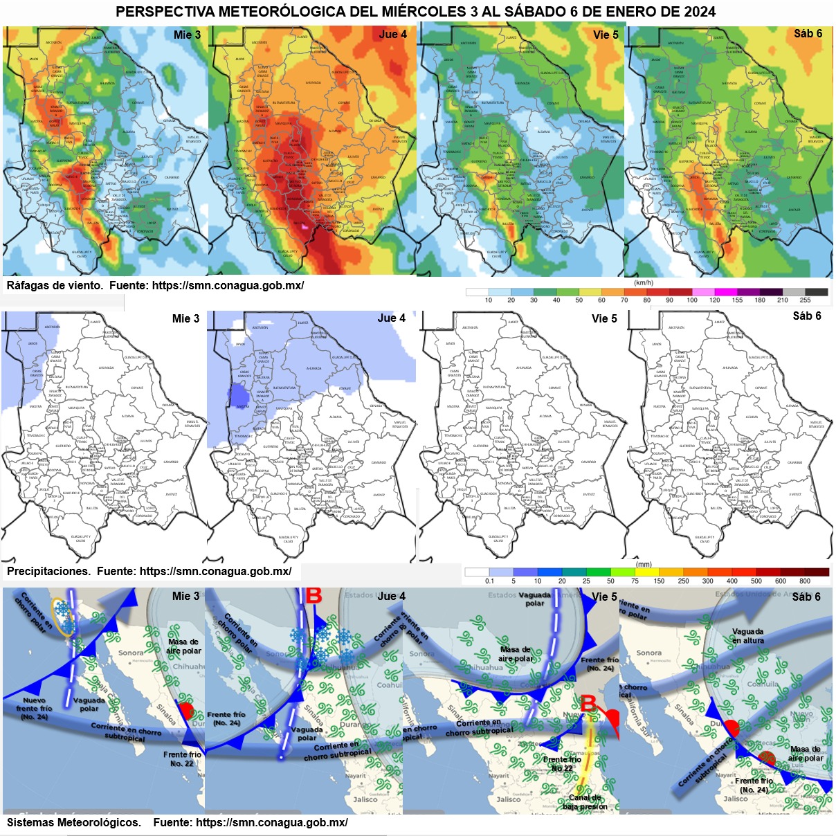 Durante este miércoles, la entrada del sistema frontal número 24, en combinación con una vaguada polar y la corriente en chorro sobre el noroeste de México, favorecerá a un ambiente muy frío por la mañana y templado por la tarde, con temperaturas de gélidas a muy frías con heladas en la zona serrana.
