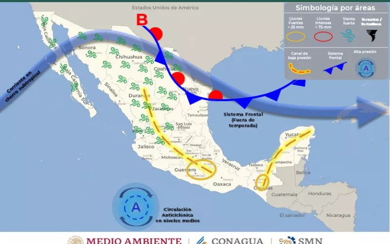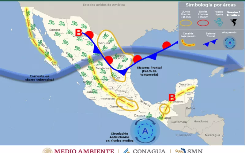 La Coordinación Estatal de Protección Civil (CEPC) dio a conocer que para este inicio de semana, un nuevo sistema frontal fuera de temporada generará la presencia de vientos moderados, así como lluvias ligeras dispersas sobre algunas regiones del territorio estatal.