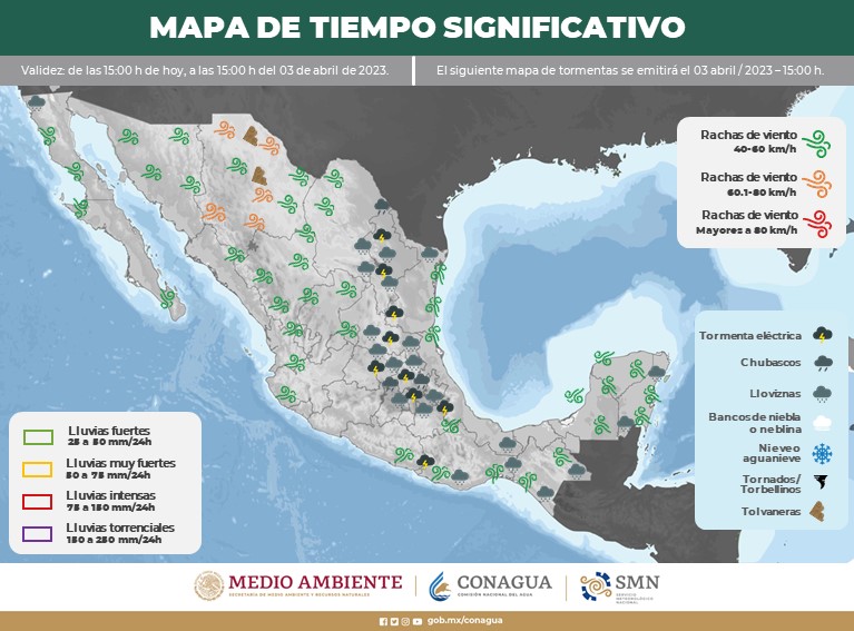 La Coordinación Estatal de Protección Civil (CEPC) informó que para las próximas horas se podrían presentar fuertes rachas de viento en algunos municipios serranos, así como regiones del norte y noroeste del estado, durante este lunes 3 y martes 4 de abril.