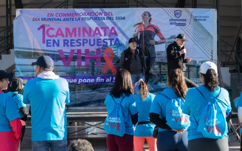 El responsable Estatal del Programa VIH/Sida e ITS, Alfredo Guzmán Macías, acompañado por el coordinador del CAPASITS Chihuahua, Juan Carlos Alberto Padilla Acosta, dieron arranque a la caminata, en la que se participaron integrantes de la organización Fátima IBP, representados por Karla Arellano Ornelas