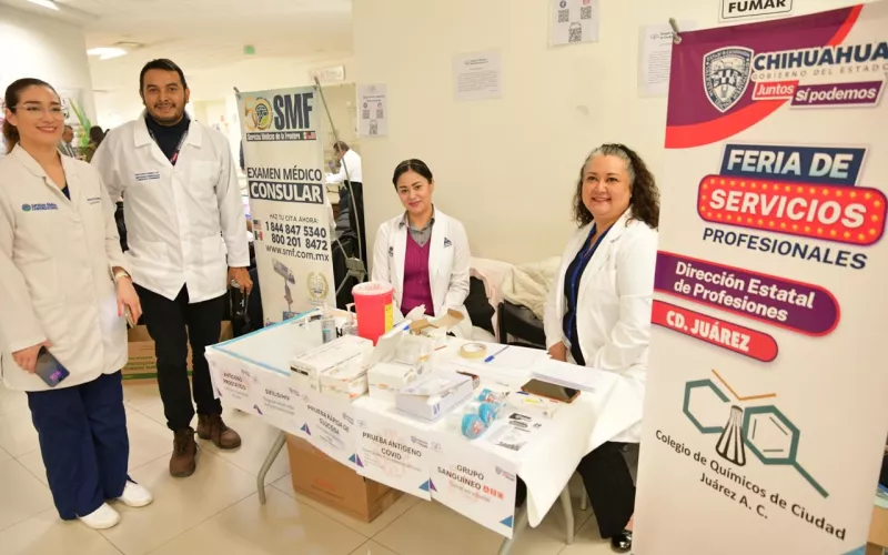 La Secretaría de Educación y Deporte (SEyD), a través de la Dirección Estatal de Profesiones, llevó a cabo la Feria de Servicios Profesionales en la Unidad Administrativa José María Morelos y Pavón (Pueblito Mexicano) de Ciudad Juárez, donde integrantes de 24 colegios de profesionistas participaron de manera gratuita.