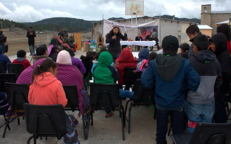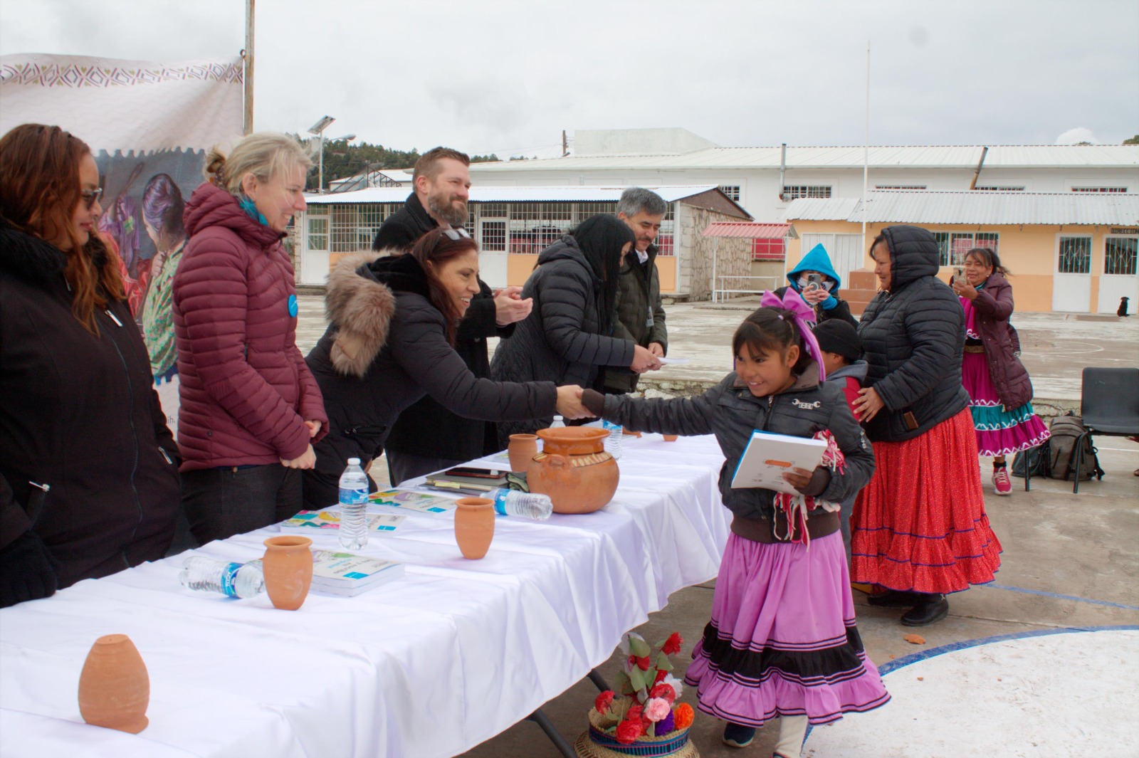 El Gobierno del Estado y el Fondo de las Naciones Unidas para la Infancia (Unicef), entregaron en San Ignacio de Arareco, municipio de Bocoyna, paquetes de libros y material educativo diverso, a estudiantes de primer y segundo grado de Primaria pertenecientes a los pueblos originarios.