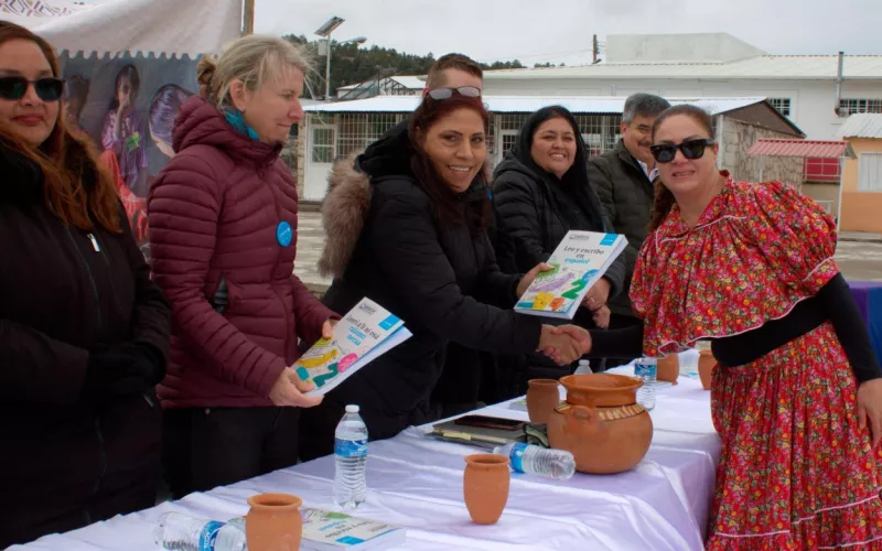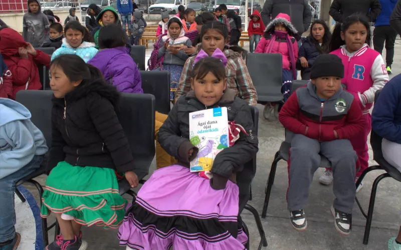 Lo anterior forma parte del Programa de Literacidad y Bilingüismo, que consiste en el diseño y elaboración de materiales educativos en los idiomas español, rarámuri alta y ódami, además de la impresión de 9 mil ejemplares con apoyo de la empresa Yazaki, en beneficio de 4 mil 500 alumnas y alumnos de Educación Indígena.