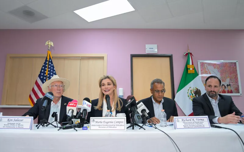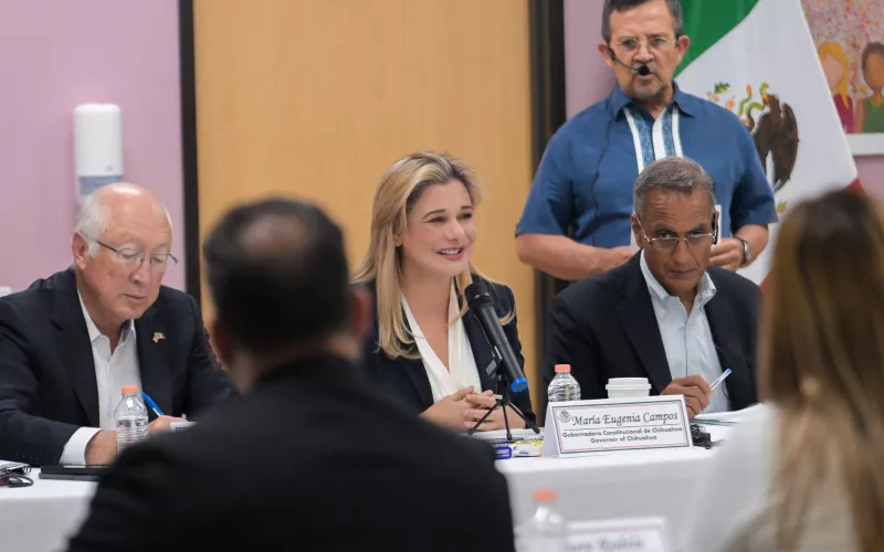 La gobernadora Maru Campos refrendó a las autoridades de Estados Unidos, el compromiso del Gobierno del Estado de mantener la cooperación y colaboración para atender a los migrantes que llegan a la frontera, sin descuidar la seguridad de los juarenses.