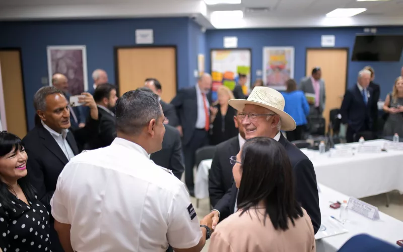 Al participar en la Mesa de diálogo sobre tendencias migratorias, en la que estuvieron presentes el subsecretario de Administración y Recursos del Departamento de Estado, Richard Verma; el embajador Ken Salazar y el cónsul Eric Cohan, afirmó que su Administración trabaja al límite de sus fuerzas y capacidades, por la seguridad y tranquilidad de la región.