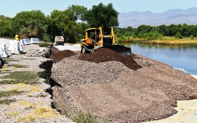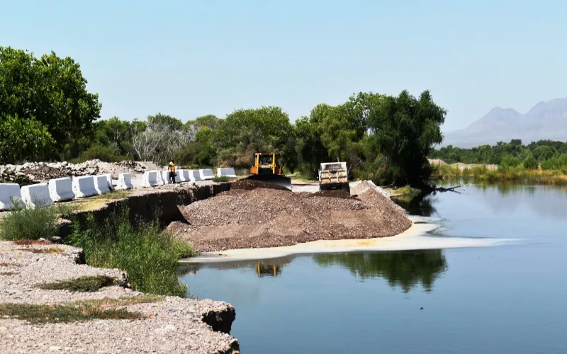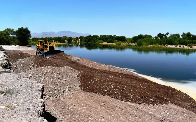 Los trabajos se llevan a cabo con personal especializado, tractores D8R, excavadoras de largo alcance y camiones de volteo para el traslado de los materiales, que suman un volumen mayor a los 55 mil metros cúbicos.