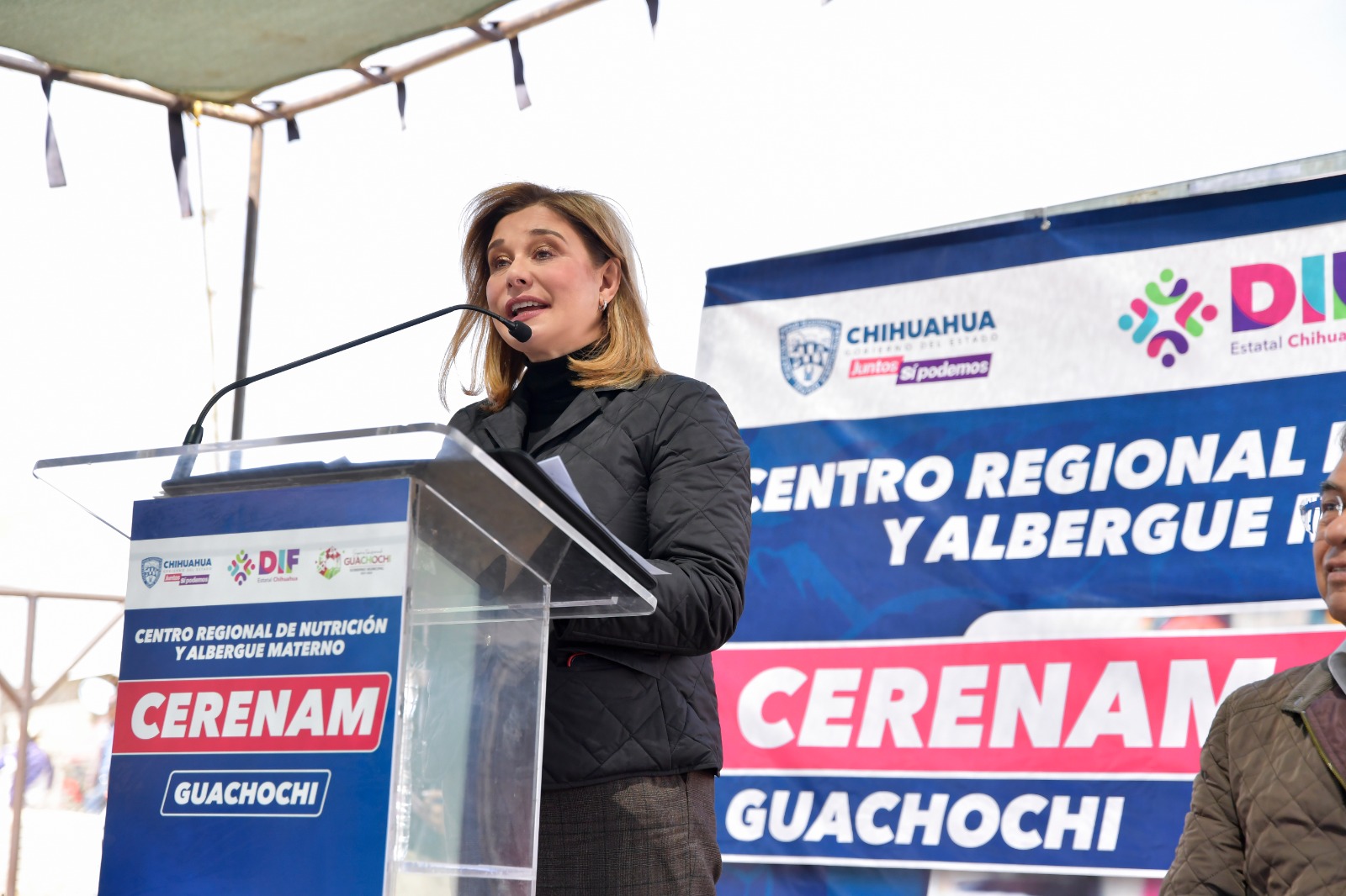 La gobernadora Maru Campos asistió a la ceremonia de entrega de nuevo equipamiento en el Centro de Regional de Nutrición y Albergue Materno (CERENAM) en Guachochi, en compañía de la presidenta del DIF Estatal, María Eugenia Galván Antillón.