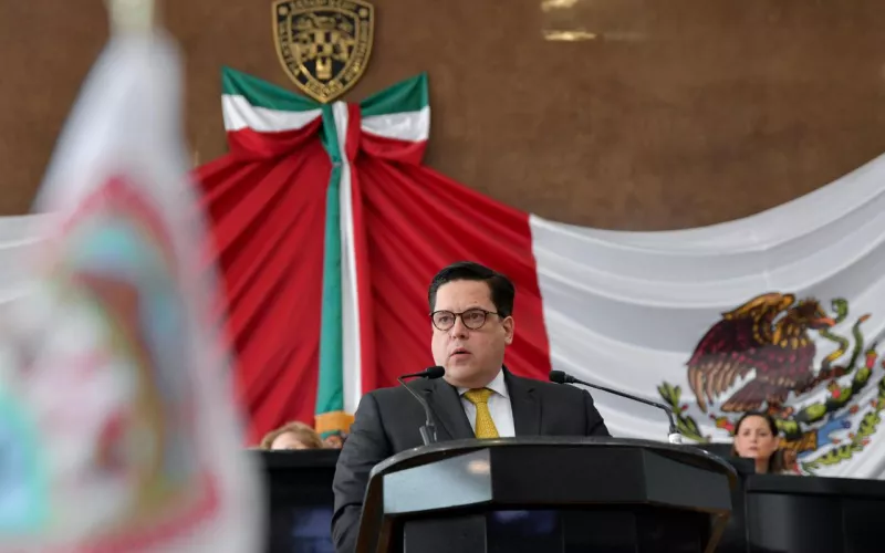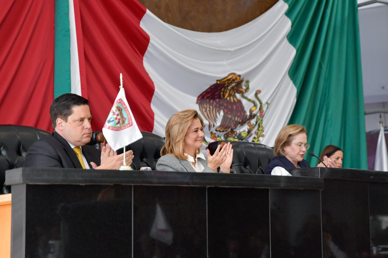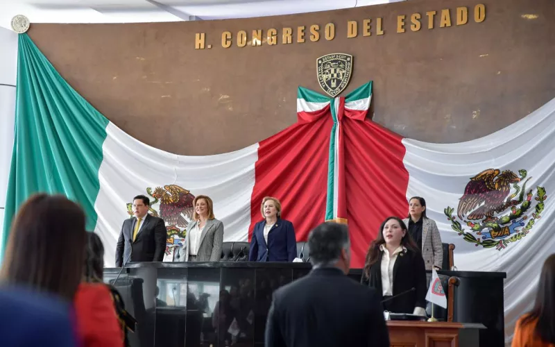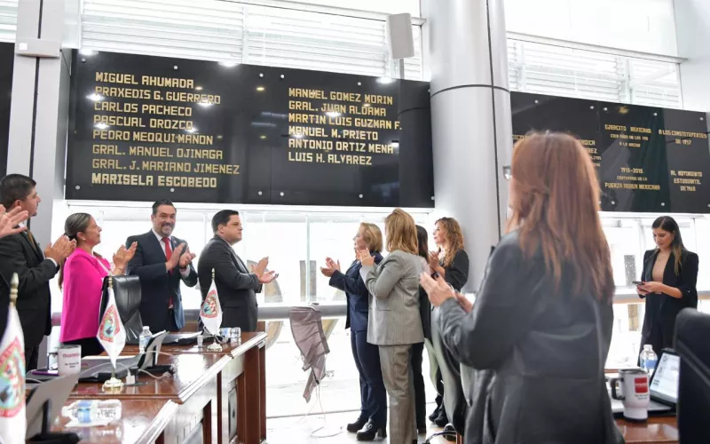La gobernadora Maru Campos encabezó la Sesión Solemne del Congreso del Estado con motivo de la develación de la inscripción de las letras doradas en honor a Antonio Ortiz Mena en el muro de chihuahuenses ilustres del recinto del Poder Legislativo.