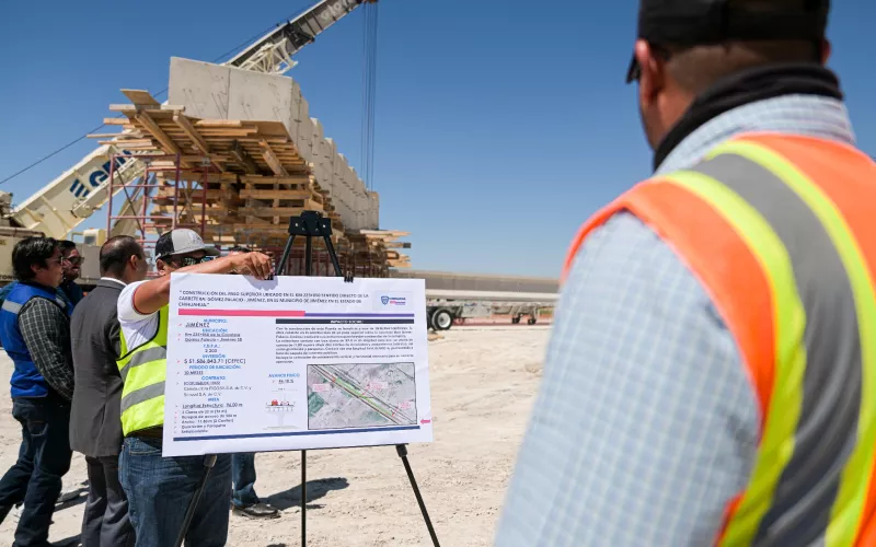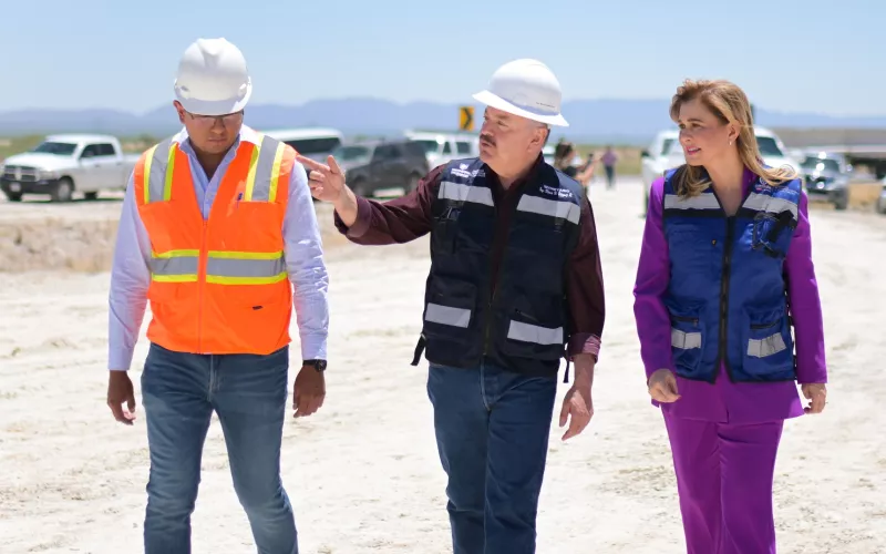 La Gobernadora Maru Campos realizó un recorrido de supervisión por las obras de construcción del Paso Superior, que se desarrollan a la altura del kilómetro 225+850 de la carretera libre Gómez Palacio–Jiménez, en la que el Gobierno del Estado invierte más de 51 millones de pesos.