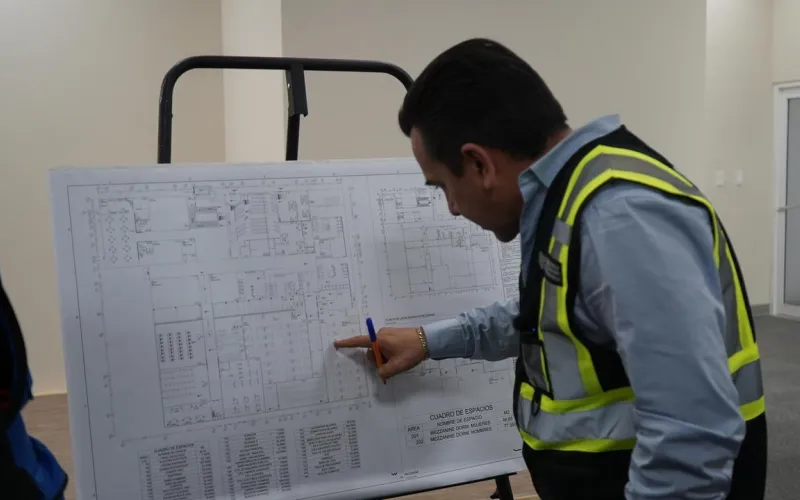 Durante el recorrido, el secretario de la SCOP, Jorge Chanez, dijo que cada etapa de la obra permite asegurar espacios dignos y funcionales para la formación de los cuerpos de seguridad.