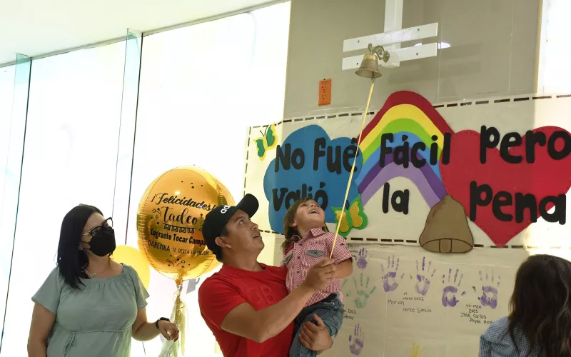De estos, 26 niñas y niños han tocado la tradicional campana en el Hospital Infantil de Especialidades de Chihuahua y desde septiembre de 2021, lo han hecho otros 16 en Hospital Infantil de Ciudad Juárez.