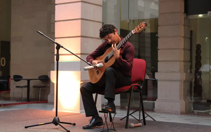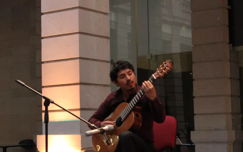El joven guitarrista sonorense Gilbert Carrizosa tuvo una exitosa presentación en Casa Chihuahua, con el concierto “Madera y Tiempo”, en el que interpretó melodías clásicas y contemporáneas, con las cuales deleitó al público asistente.
