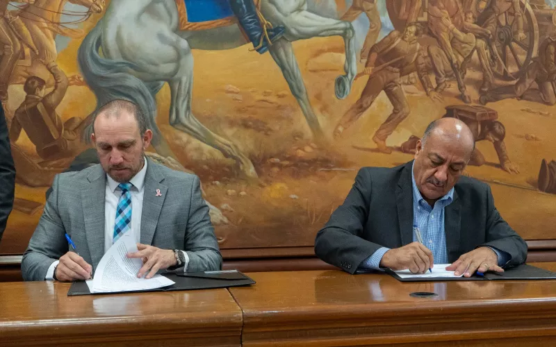 Con el objetivo de coordinar esfuerzos para trabajar en la formación y capacitación de recurso humano en el área médica, los titulares de las secretarías de Salud y de Educación y Deporte, Gilberto Baeza y Hugo Gutiérrez Dávila, respectivamente, firmaron un convenio de colaboración.