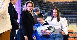 En total fueron distribuidos 26 mil 820 uniformes y 24 mil 241 tenis, en beneficio de alumnas y...