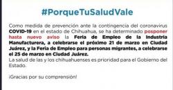Para proteger la salud de las y los chihuahuenses se cambiarán de fechas la Feria de Empleo de la...