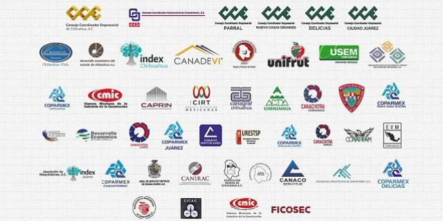 El documento es firmado por los consejos coordinadores empresariales de Chihuahua, Hidalgo del Parral, Nuevo Casas Grandes, Delicias y Ciudad Juárez, así como por las cámaras CANACO, COPARMEX y CANACINTRA del Estado, los consejos de Desarrollo Económico, de la industria maquiladora (INDEX), de la Vivienda (CANADEVI), las asociaciones ganaderas agrupadas en la Unión Ganadera de Chihuahua (UGRCH), UNIFRUT, USEM, de la Industria de la Transformación (CMIC), CAPRIN, CIRT, CANAGRAF, AMDA, CANACINTRA, CONATRAM, EVM, FICOSEC, CANIRAC, entre otras.