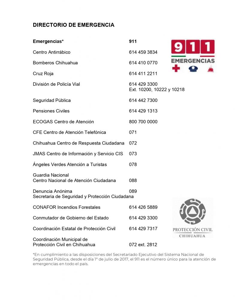Directorio de Teléfonos de Emergencia Audiencia General Dependencia Coordinación Estatal de Protección Civil
