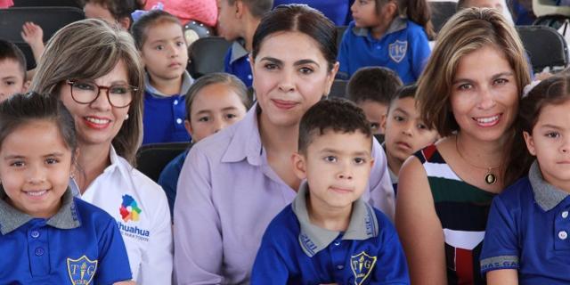 Niños y niñas de la Escuela Primaria Tomás Gamero #2131, de Aldama, fueron los primeros beneficiados en este proceso inicial de la entrega de comedores, y ante quienes la presidenta del DIF Estatal, manifestó que hacer equipo rinde mejores resultados, y reforzar ese vínculo, beneficia a la población a la que se deben.