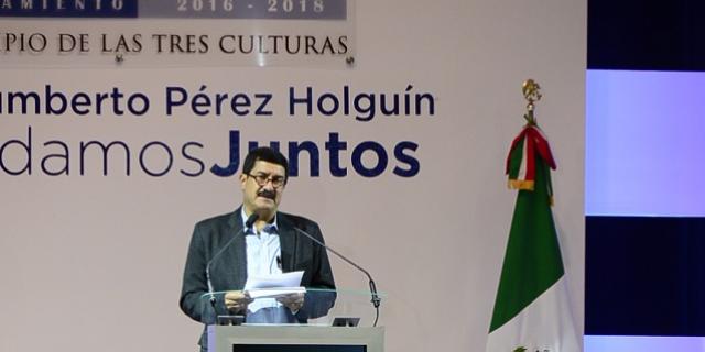 En la presentación de su Primer Informe, Humberto Pérez Holguín, destacó los avances en los seis ejes de su gobierno: Educación, Desarrollo social, Desarrollo económico, Infraestructura, Seguridad pública y Administración eficiente.