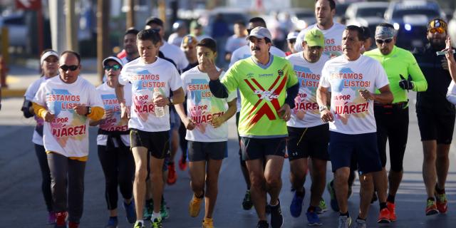 Portando la camiseta emblemática del equipo juarense Bravos, el gobernador del estado, Javier Corral, encabezó una carrera de prueba, en punto de las 8 de la mañana.