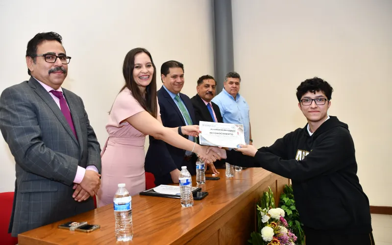 Durante la ceremonia se entregaron reconocimientos a los asesores Jorge Fernández Quezada y Mario Héctor Valenzuela Trujillo, además de la entrenadora Rocío Zea Rico, y al personal de la Facultad de Contaduría y Administración de la UACH.