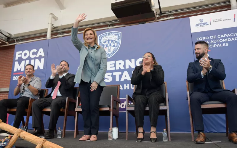 La gobernadora Maru Campos inauguró en las instalaciones de la Universidad del Valle de México, el Foro de Capacitación para Autoridades Municipales (Focamun), por medio del cual se acercan los servicios y programas del Gobierno del Estado a los 67 municipios, en beneficio de los chihuahuenses.