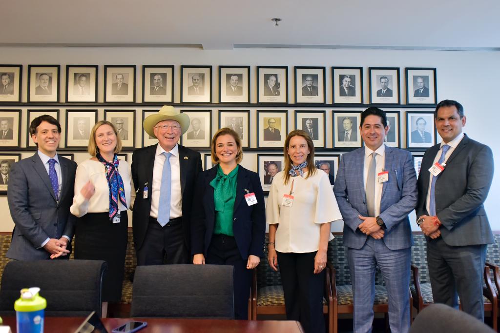 En compañía del Secretario de la Coordinación de Gabinete, la Gobernadora de Chihuahua fue recibida por el embajador de Estados Unidos en México y Rachel Poynter, subsecretaria adjunta para México y Canadá de la Oficina de Asuntos del Hemisferio Occidental para dar seguimiento a los programas que operan para la modernización y ampliación de las puertas de entrada de Chihuahua y Estados Unidos.
