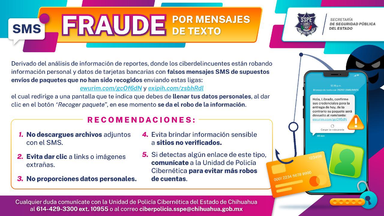 La Secretaría de Seguridad Pública del Estado (SSPE) a través de su Unidad de Policía Cibernética, lanzó una alerta a la población por robo de información personal a través de un mensaje para recoger un paquete.