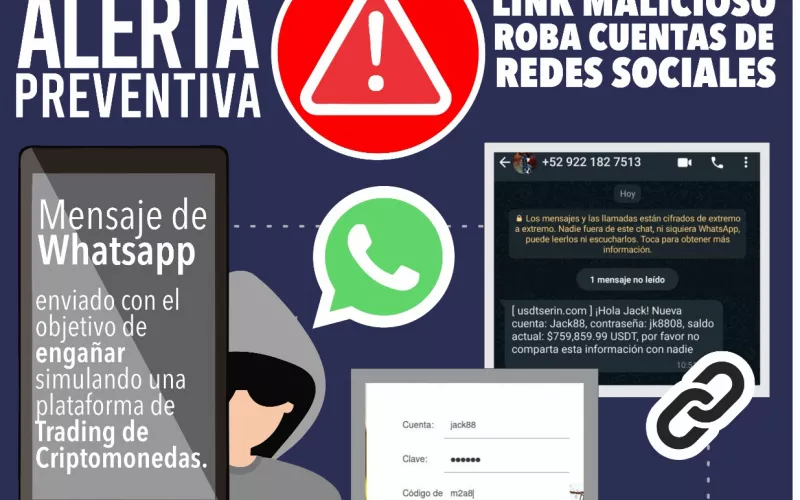 En días pasados, comenzó a circular un mensaje a través de la plataforma Whatsapp el cual contiene un link malicioso que roba las cuentas de redes sociales de quien ingresa.