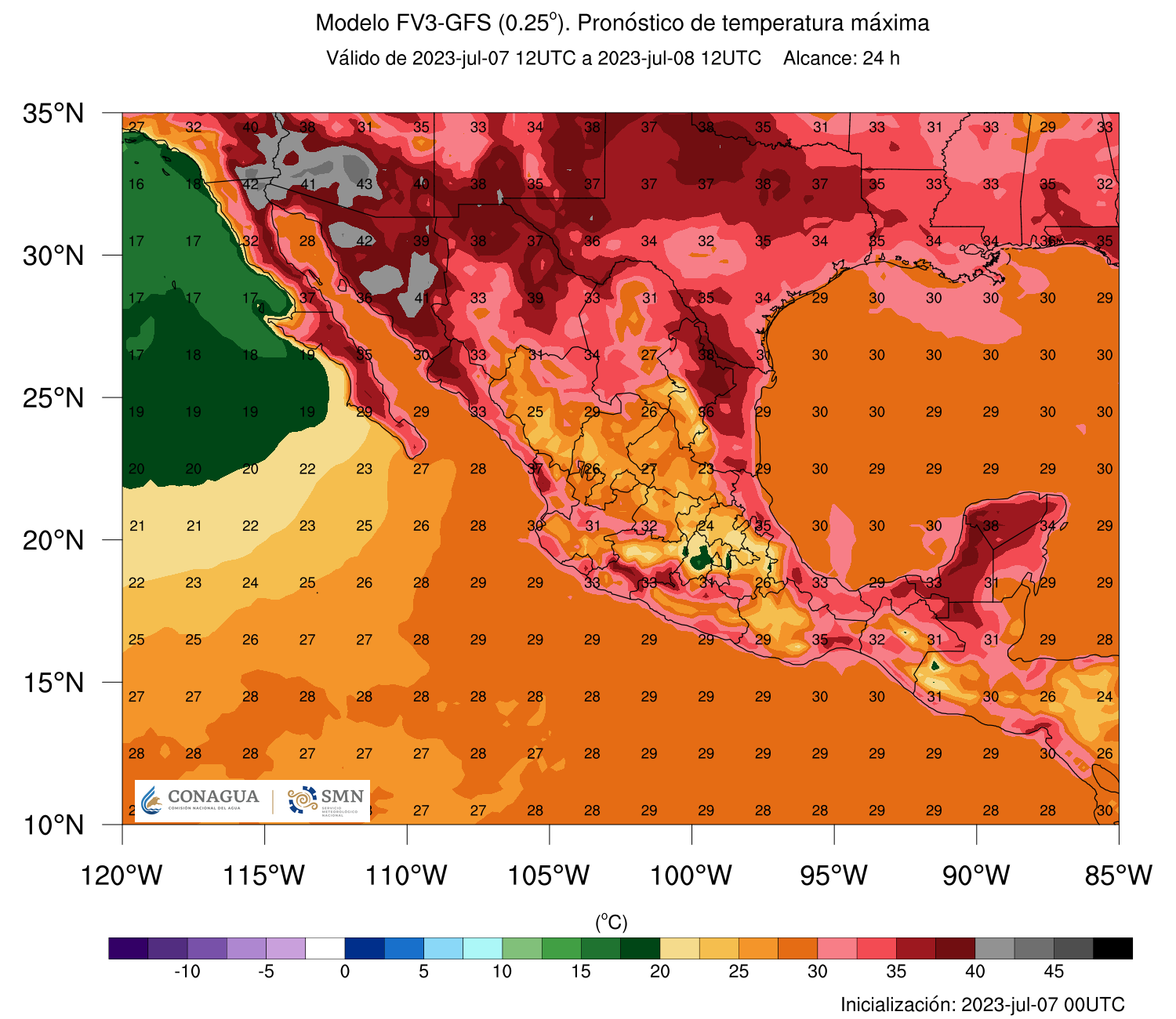Estas condiciones son generadas debido a la presencia de un canal de baja presión sobre la Sierra Madre Occidental que originará valores superiores a los 39 y 40 grados centígrados (°C) en las temperaturas.