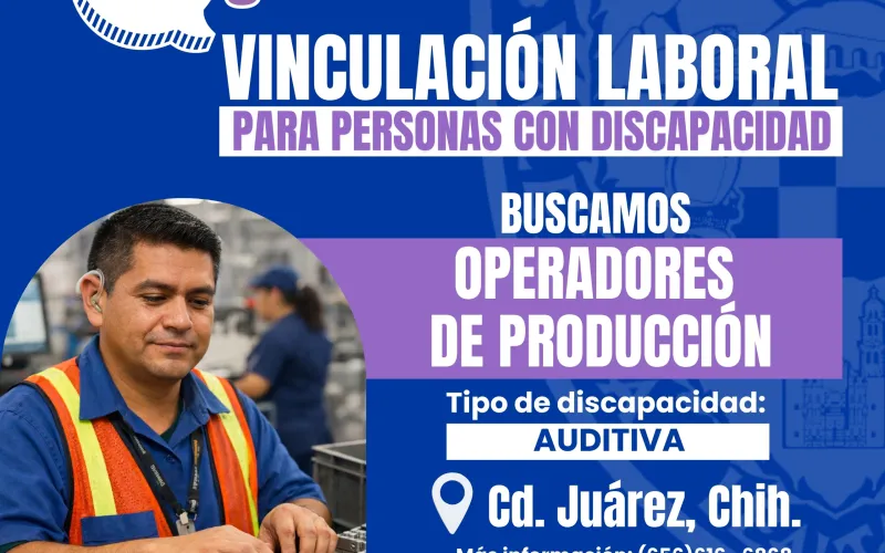 El funcionario comentó que para la población de Ciudad Juárez, se dispone de vacantes como operadores de producción en la industria manufacturera, dirigidas a personas con discapacidad auditiva.