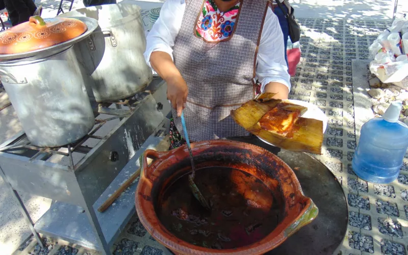 Dentro de los alimentos que podrán encontrar durante el Festival del Mole habrá una gran variedad, entre los que destacan el mole rojo, verde, dulce, picoso en pollo, en carne de puerco, en tamales, en pasta, de olla, en champiñones, habas y romero, en carne de res y en quesadillas.