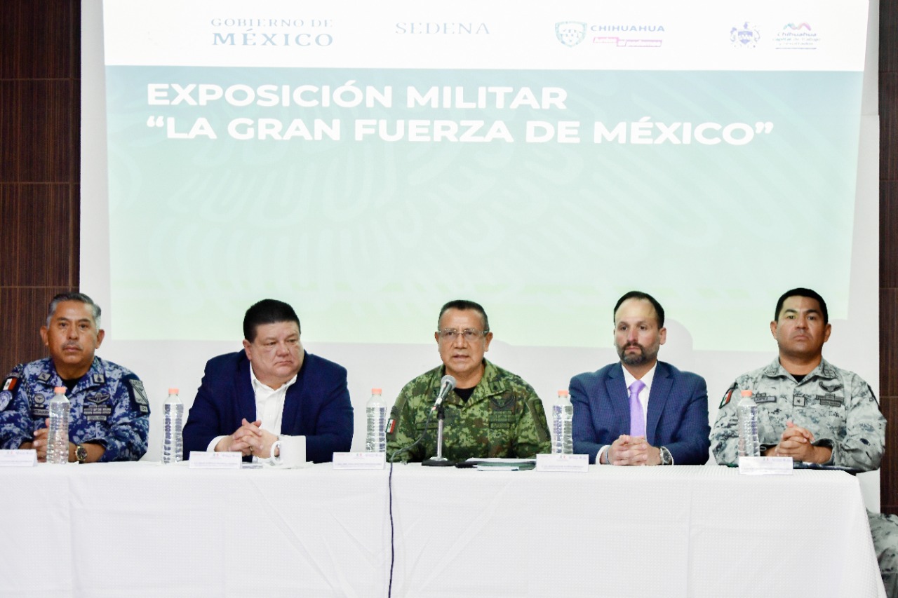 Esta mañana se anunció la Exposición Militar “La Gran Fuerza de México”, la cual se presentará en la ciudad de Chihuahua y tiene como principal objetivo que la sociedad conozca más a su Ejército, Fuerza Aérea y Guardia Nacional, además de colaborar con la reconstrucción del tejido social mediante la sana convivencia.