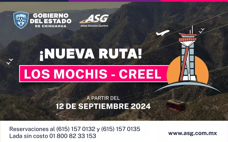 El Gobierno del Estado en colaboración con la empresa Aéreo Servicio Guerrero, anunciaron de manera oficial la nueva ruta Los Mochis-Creel, que inicia a partir del 12 de septiembre y representa un paso significativo en la consolidación del Aeropuerto Barrancas del Cobre.