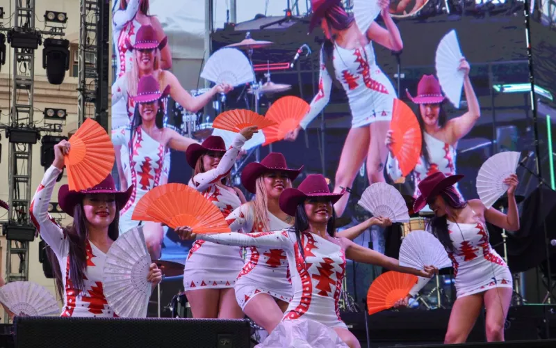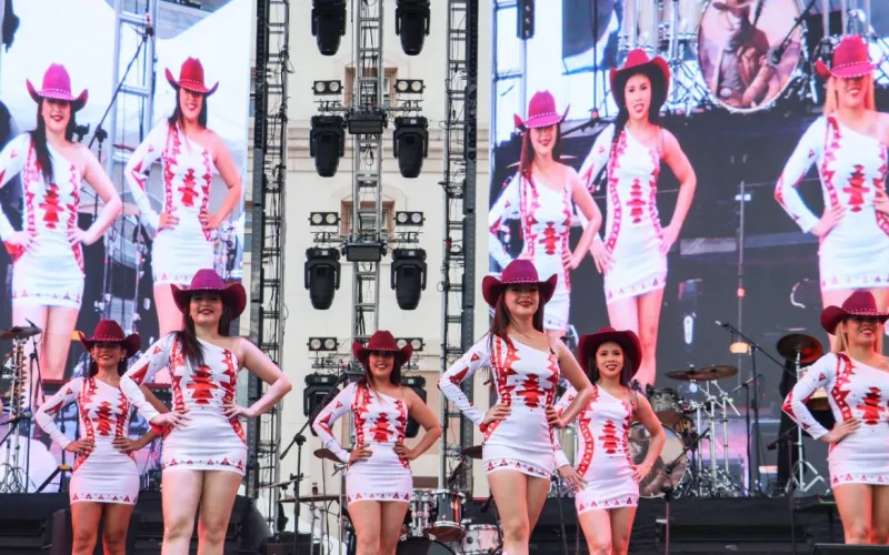 Las pegajosas melodías que el "Tennessee Las Chicas Doradas" ballet Country bailó de forma sincronizada, dieron la apertura a la cartelera artística que se presentará durante el resto de la tarde y noche de hoy, hasta la madrugada de este sábado, con el espectáculo dell internacional cantante mexicano, Carin León.